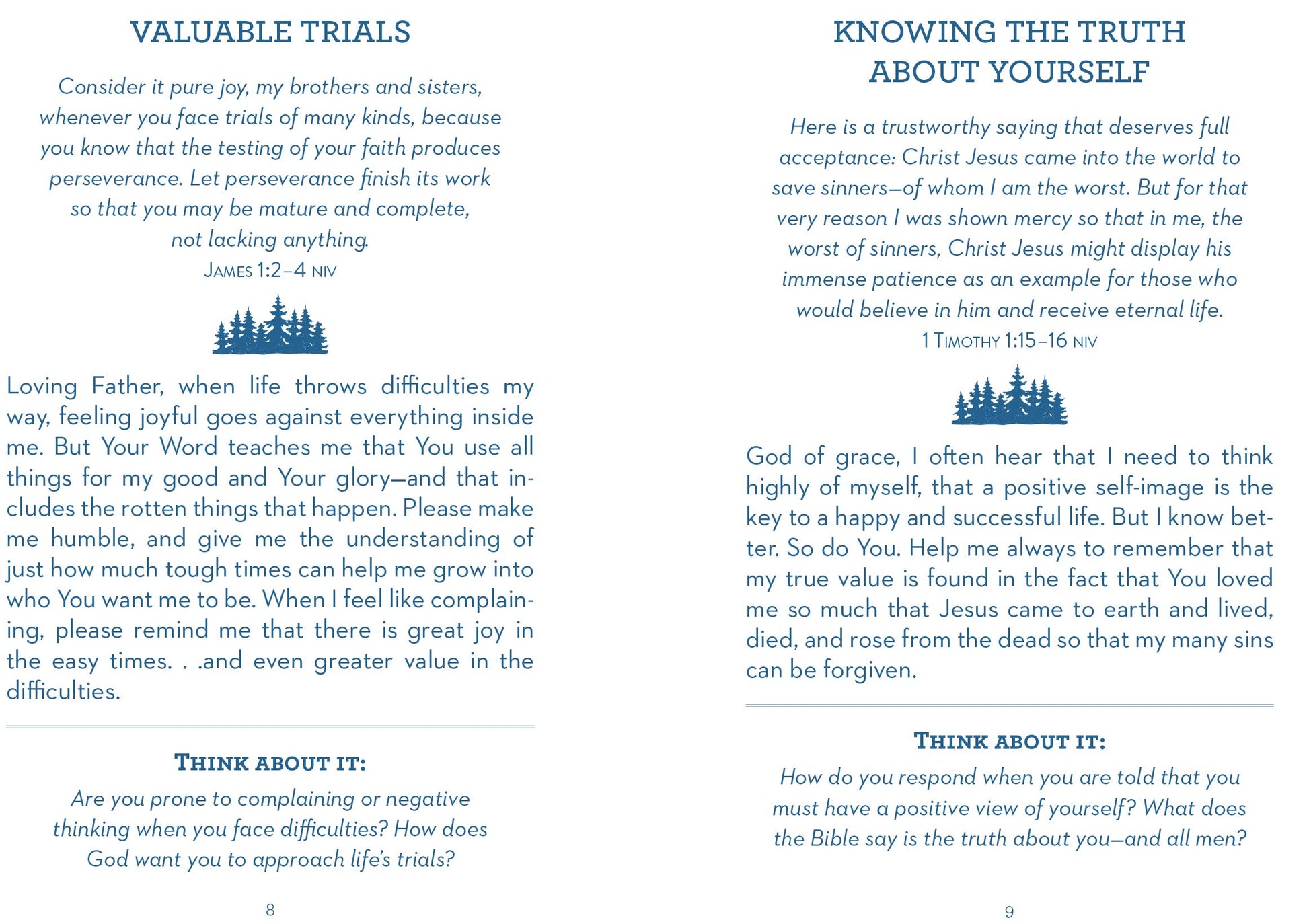 This devotional prayer title packs a powerful dose of inspiration into just-right-sized readings for men of all ages and backgrounds. Each of these 180 prayers, written specifically for devotional quiet time, meets you right where you are—and is complemented by a relevant scripture and question for further thought. Addressing the vital issues of life common to all men—such as the two great commandments of loving God and loving others, having and being a friend, leaving a legacy, purity, and the thought life—3-Minute Prayers for Men will lead you step-by-step into a closer walk with God the Father and Jesus His Son.