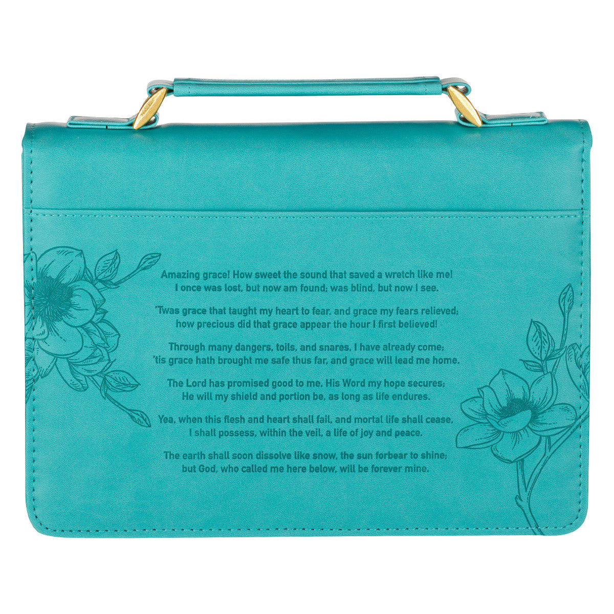 Amazing Grace Floral Teal Faux Leather Fashion Bible Cover