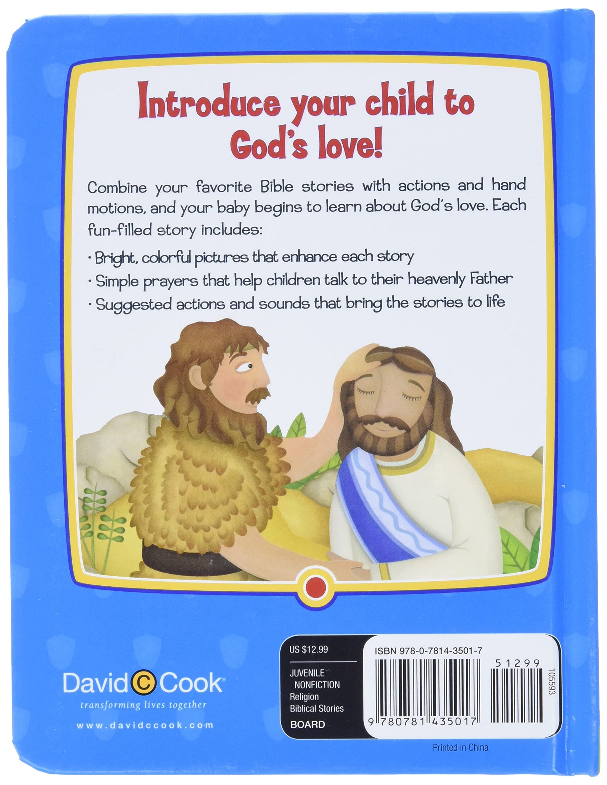 Bible fun that touches hearts! Combine your favorite Bible stories with actions and hand motions, and Baby begins to learn about important Bible heroes. Each story ends with a prayer; you add the cuddle!