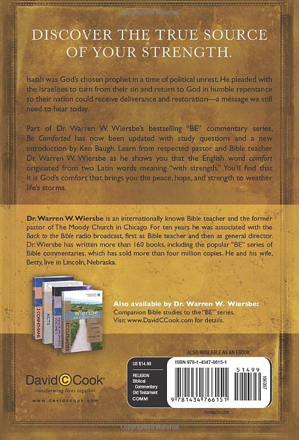 For anyone who thinks that comfort is equivalent to pity and that it is only priceless to those who need an emotional crutch, best-selling author Warren Wiersbe applies the words of the prophet Isaiah to prove that God's comfort is no such thing. The word comfort actually translates "to repent" in Hebrew; our English translation, however, adds another dimension to the word since it originated from two Latin words meaning "with strength."