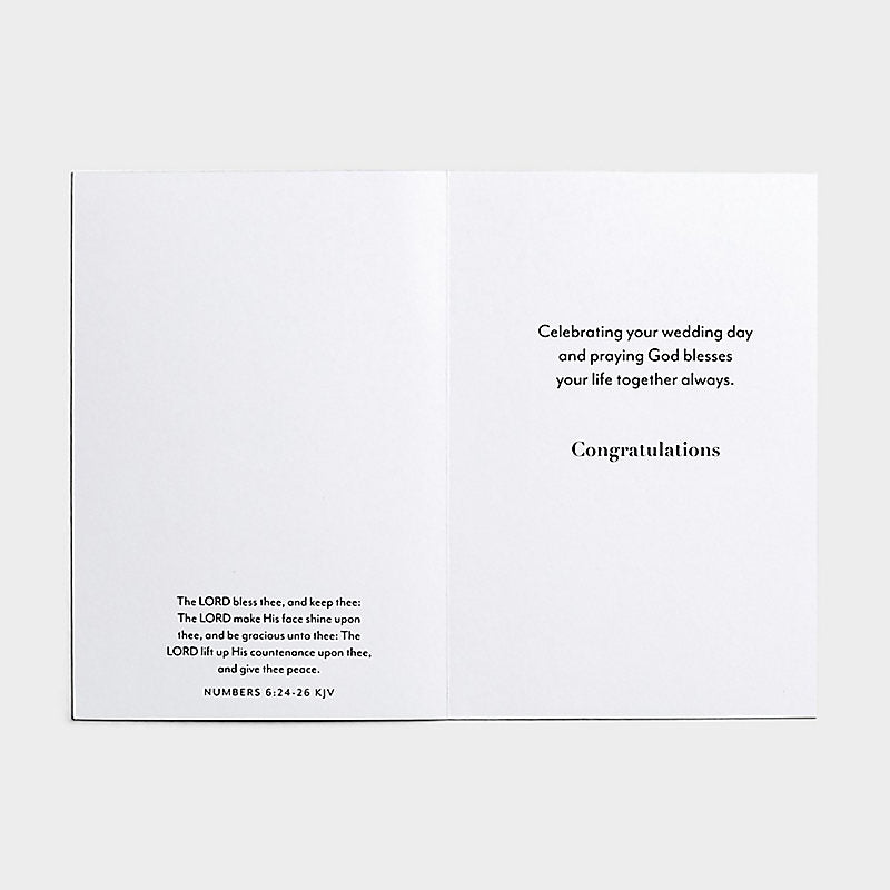 Inside: Celebrating your wedding day and praying God blesses your life together always. Congratulations