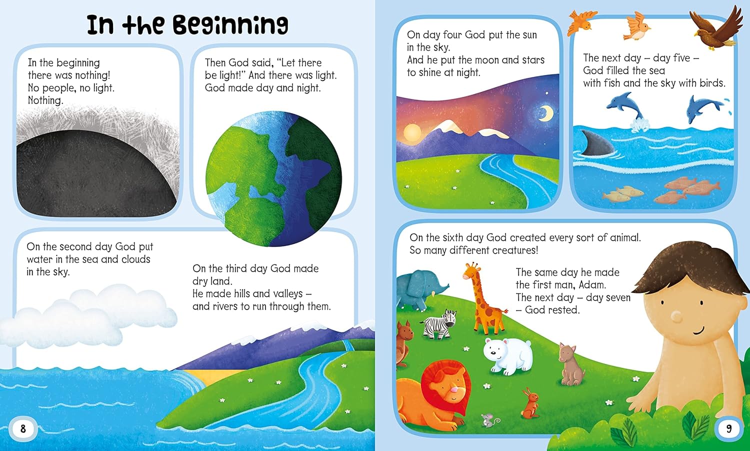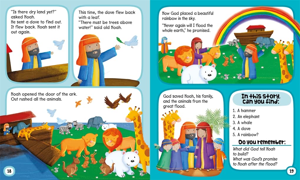 A bold and colourful Bible designed for children aged 2 years and over to introduce 18 best-loved Bible stories about key people and events in the Old and New Testaments, from Adam and Eve to Paul.