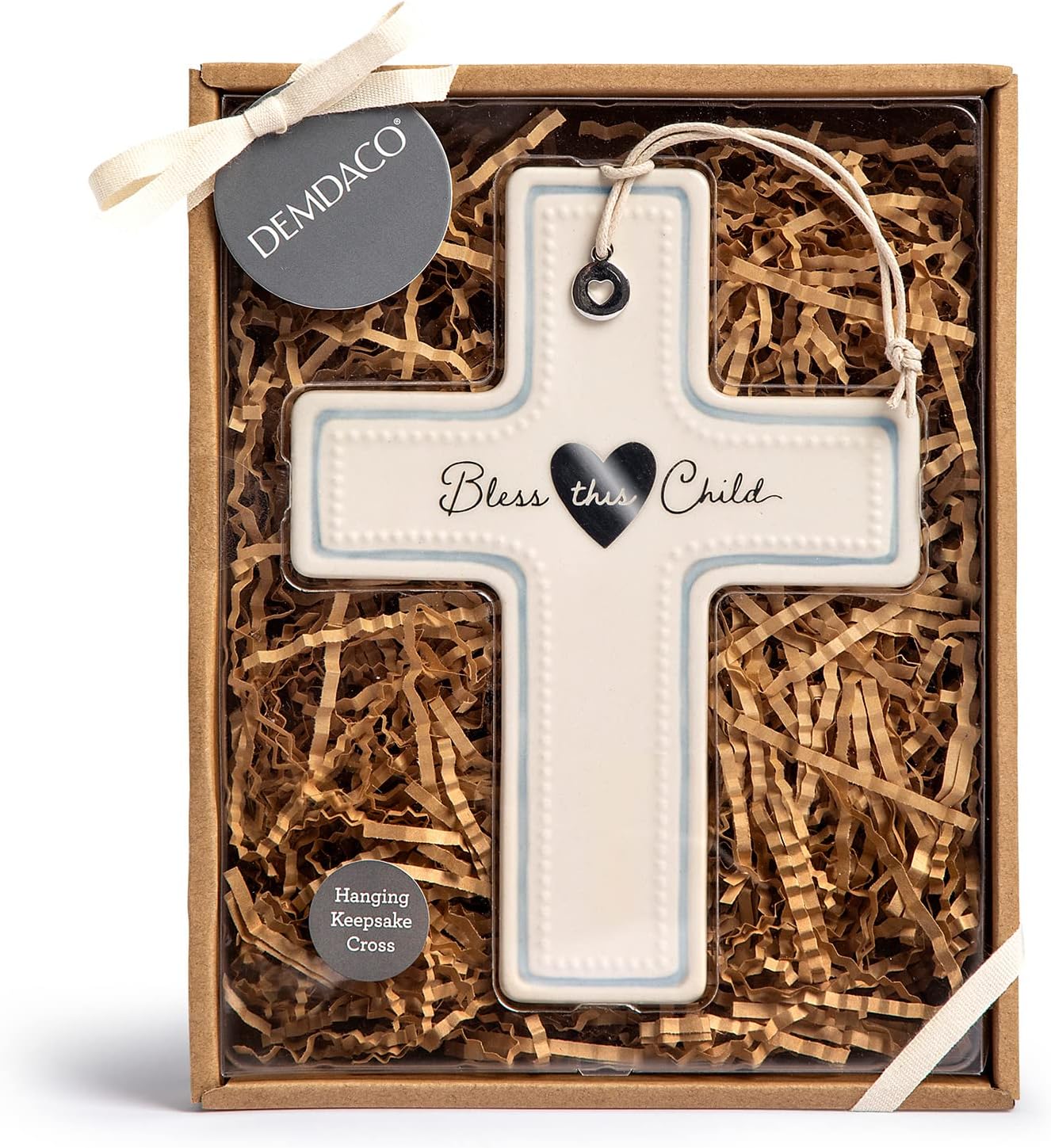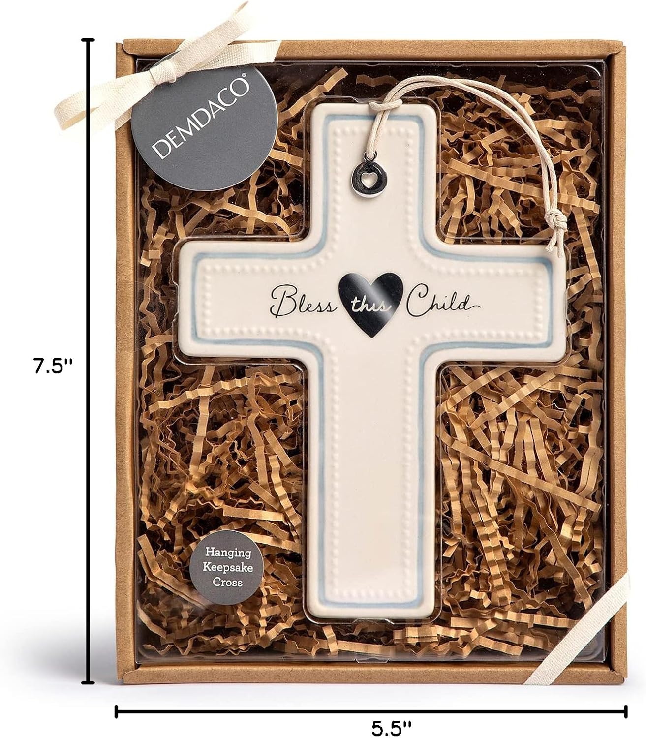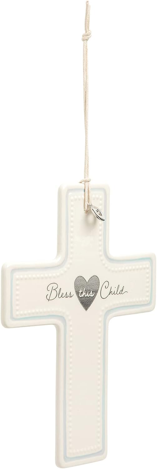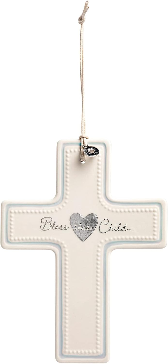DEMDACO Bless This Child Blue 7.5 x 5.5 Inch Ceramic Stoneware Hanging Wall Cross