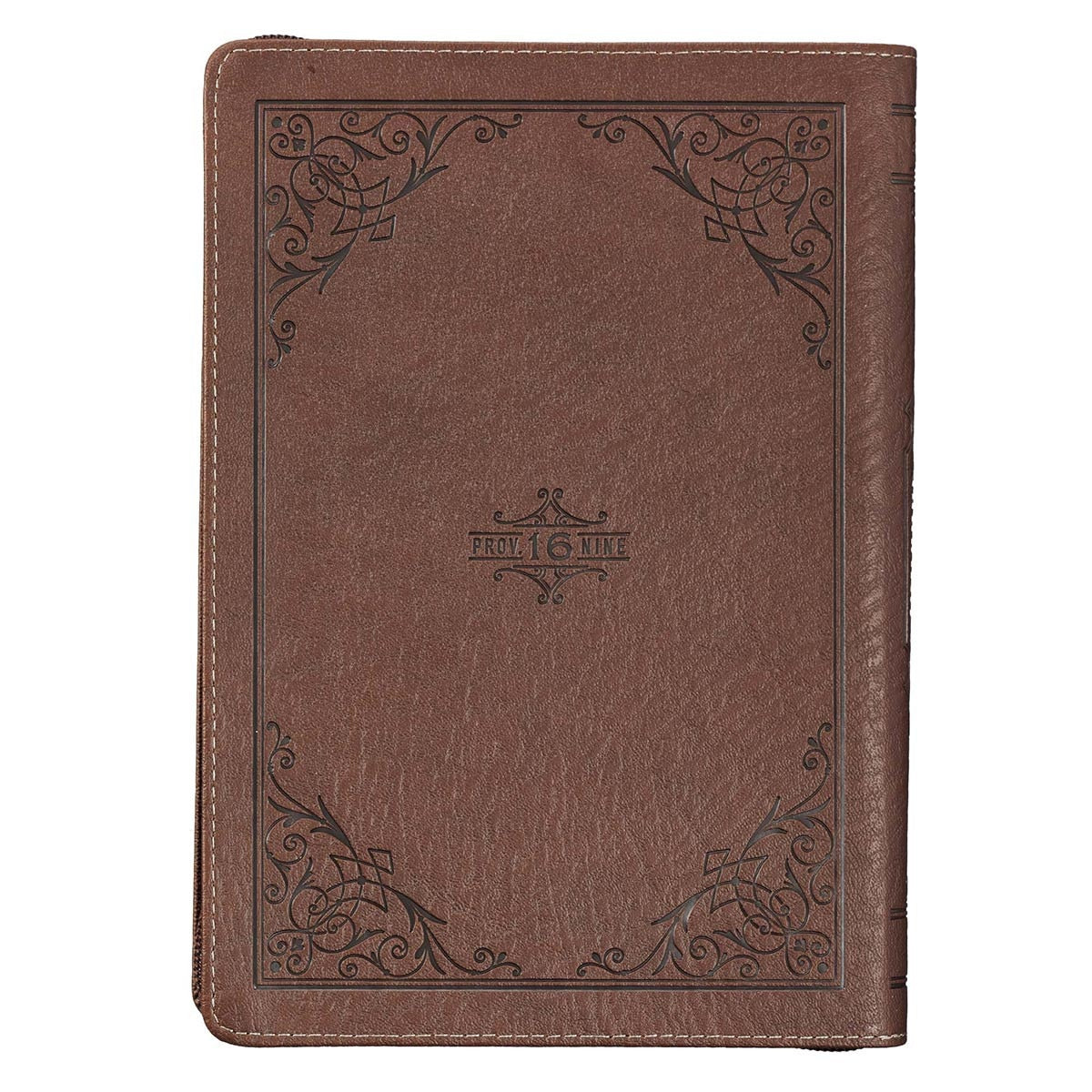 A Man's Heart Classic Faux Leather Zippered Journal in Brown - Proverbs 16:9