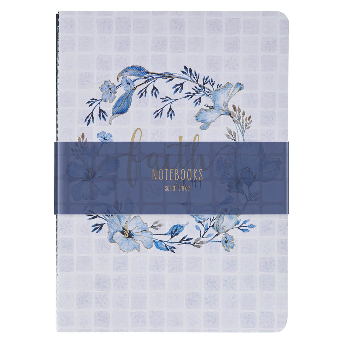 Faith Love and Grace Blue Floral Tile Notebook Set