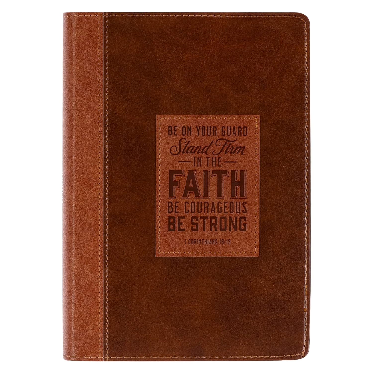 Journal Stand Firm in the Faith 1 Cor. 16:13 Inspirational Scripture Notebook, Ribbon Marker, Brown Faux Leather Flexcover, 336 Ruled Pages