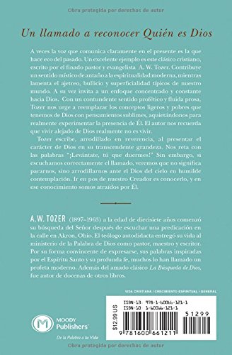 A pesar de haber sido escrito en tan poco tiempo, la profundidad, claridad e integridad del mensaje de A.W. Tozer han hecho que La Búsqueda De Dios sea un libro favorito hasta presente. Más de 1.5 millones de ejemplares han sido impresos en 20 idiomas.