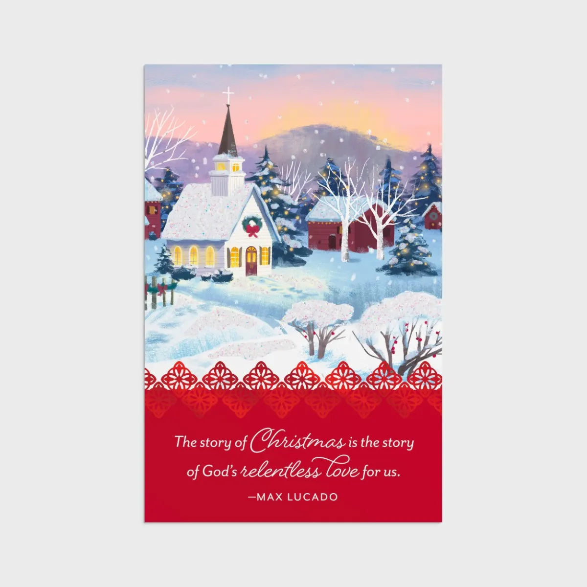 Send Christmas blessings of peace to friends and family with this lovely inspirational boxed set of Christmas cards from DaySpring. Featuring beautiful artwork of a peaceful Christmas village, an inspirational message from beloved author Max Lucado, and a Bible verse from the New Century Version Scripture text, this card is sure to remind those who send and receive it of the true story of Christmas.