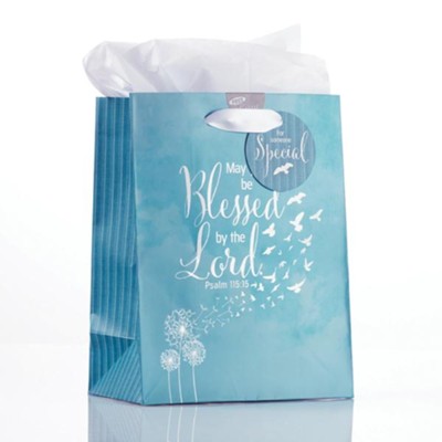 Medium gift bag with satin ribbon handles, tissue paper and gift tag