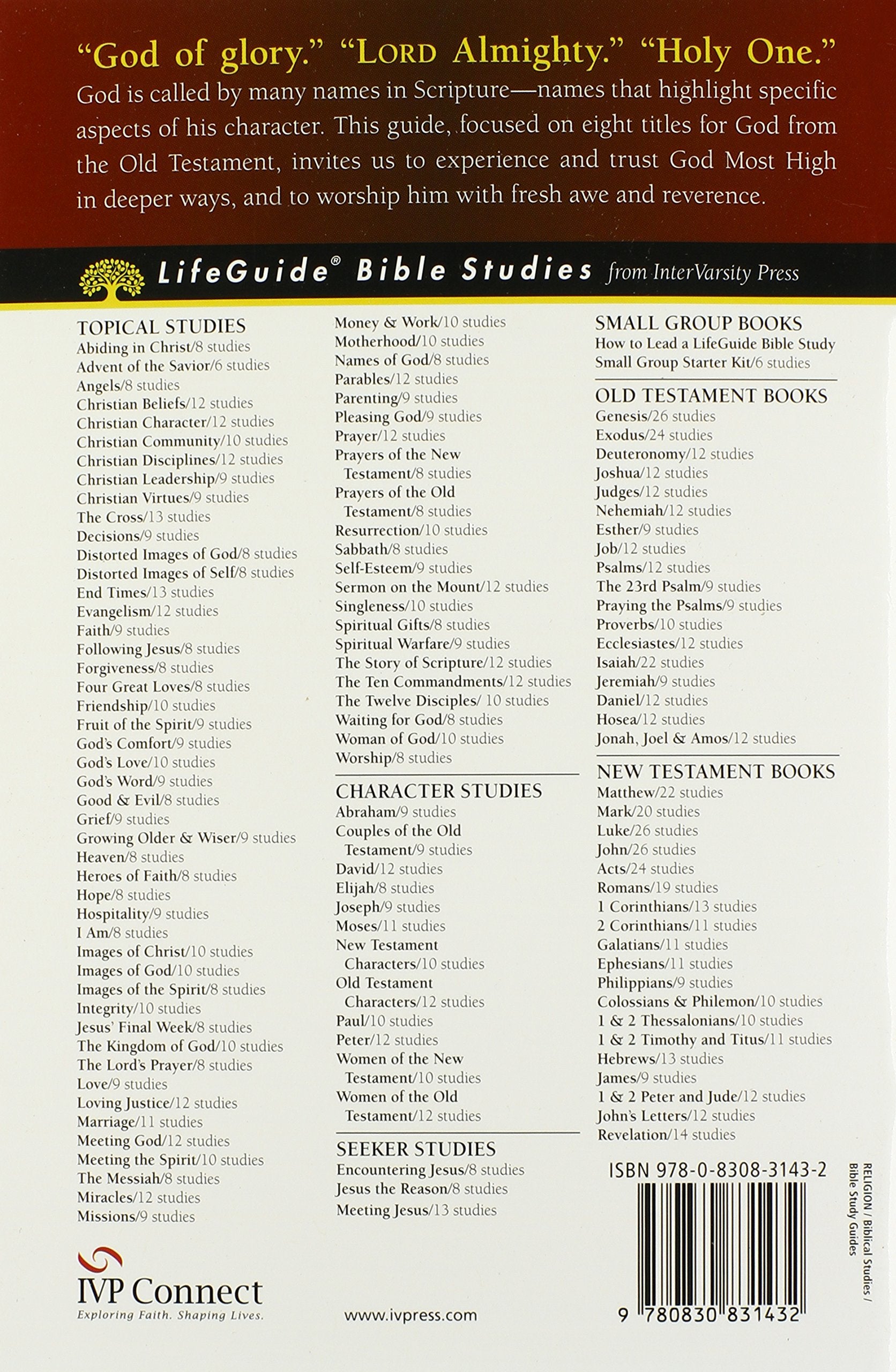 "God of glory." "The God Who Provides." "Holy One." God is called by many names in Scripture--names that highlight specific aspects of his character. This eight-session LifeGuide® Bible Study by Doug Connelly, focused on eight titles for God from the Old Testament, invites you to know and experience the Lord Almighty in deeper ways. As you do so, you will come to trust him more fully and worship him with fresh awe and reverence. For over three decades LifeGuide Bible Studies have provided solid biblical content and raised thought-provoking questions―making for a one-of-a-kind Bible study experience for individuals and groups. This series has more than 130 titles on Old and New Testament books, character studies, and topical studies.