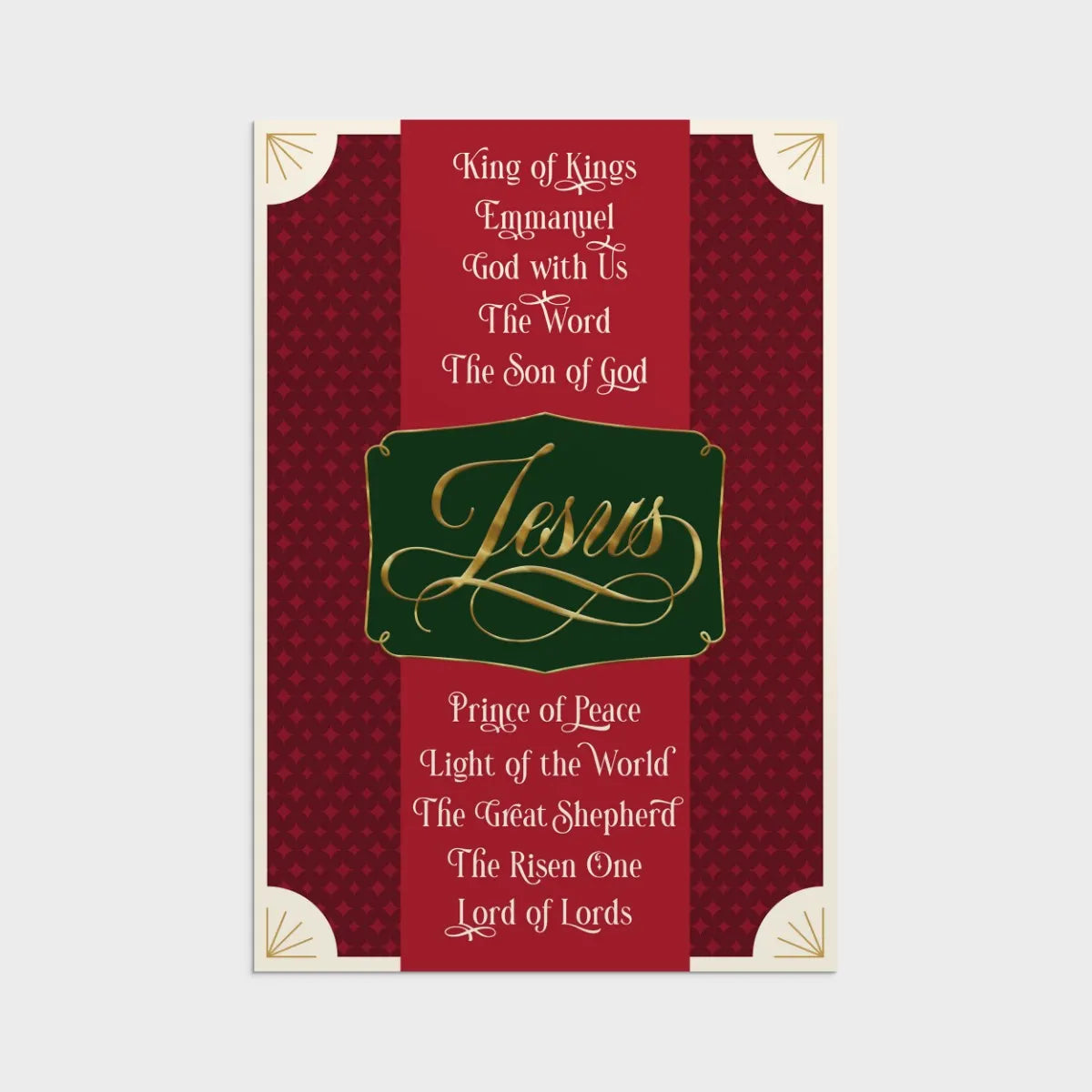Front: King of Kings, Emmanuel, God with Us, The Word, The Son of God, Jesus, Prince of Peace, Light of the World, The Great Shepherd, The Risen One, Lord of Lords