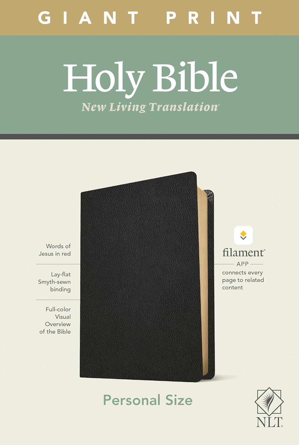 The new Tyndale NLT Personal Size Giant Print Bible, Filament-Enabled Edition has readable text and an attractive layout in an easy-to-carry size. And while it has the same low price as basic text-only Bibles, the NLT Personal Size Giant Print Bible offers much more. It not only features a bold new design and the trusted and much-loved New Living Translation (NLT) but also includes the groundbreaking Filament Bible app.