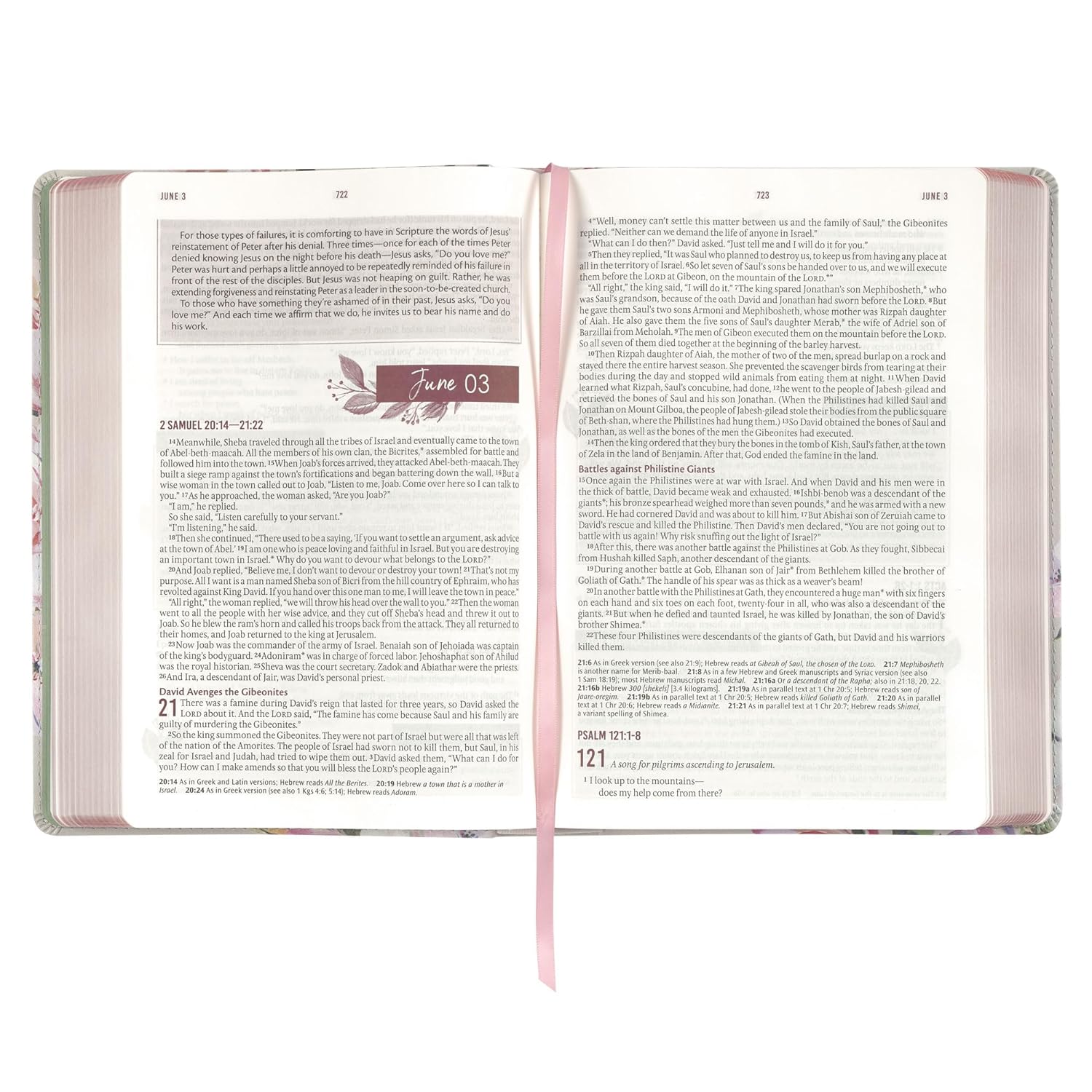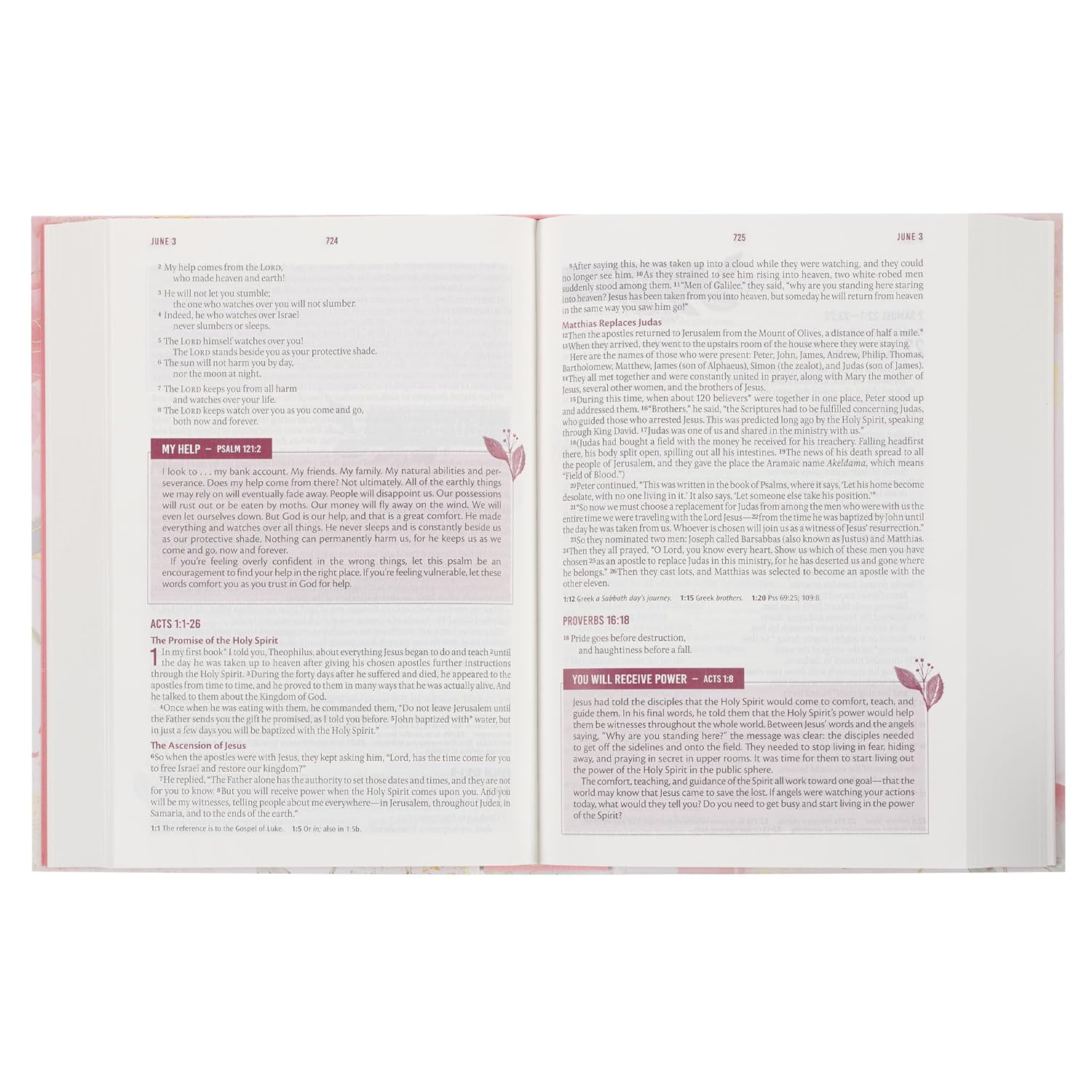 Embark on a journey of personal growth by reading the 730 daily devotions and passages from the Old and New Testaments, Psalms, and Proverbs. This devotional Bible, written in the accessible New Living Translation text, provides the tools and teachings to help you align your faith and values.
