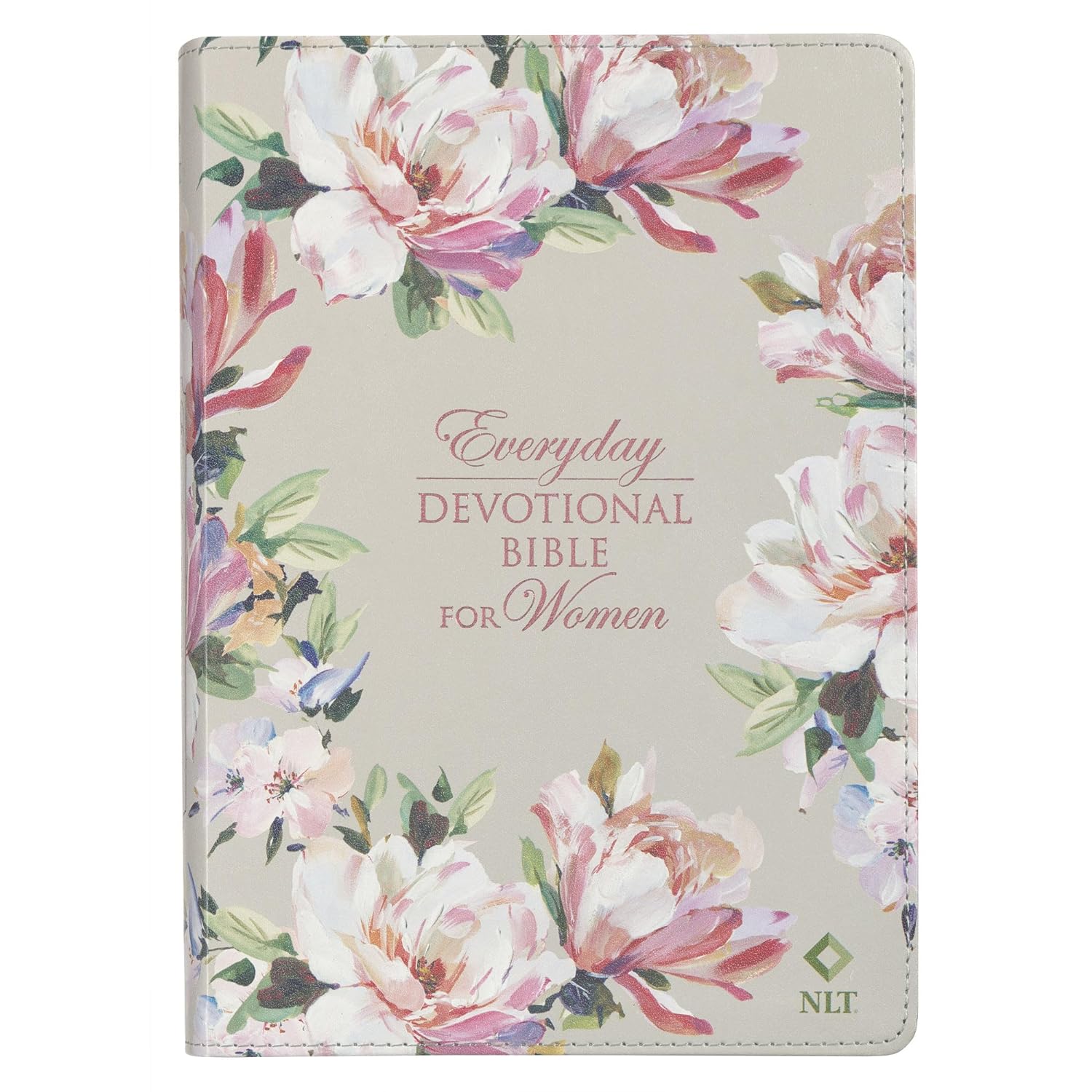 The Pearlized Gray Floral Faux Leather NLT Everyday Devotional Bible for Women beckons with its delightful cover design, sure to capture any woman's heart. Yet, the true gem lies within. This Bible weaves daily Scripture readings with thought-provoking devotional content, serving as your compass on a year-long expedition through the rich tapestry of the Bible.