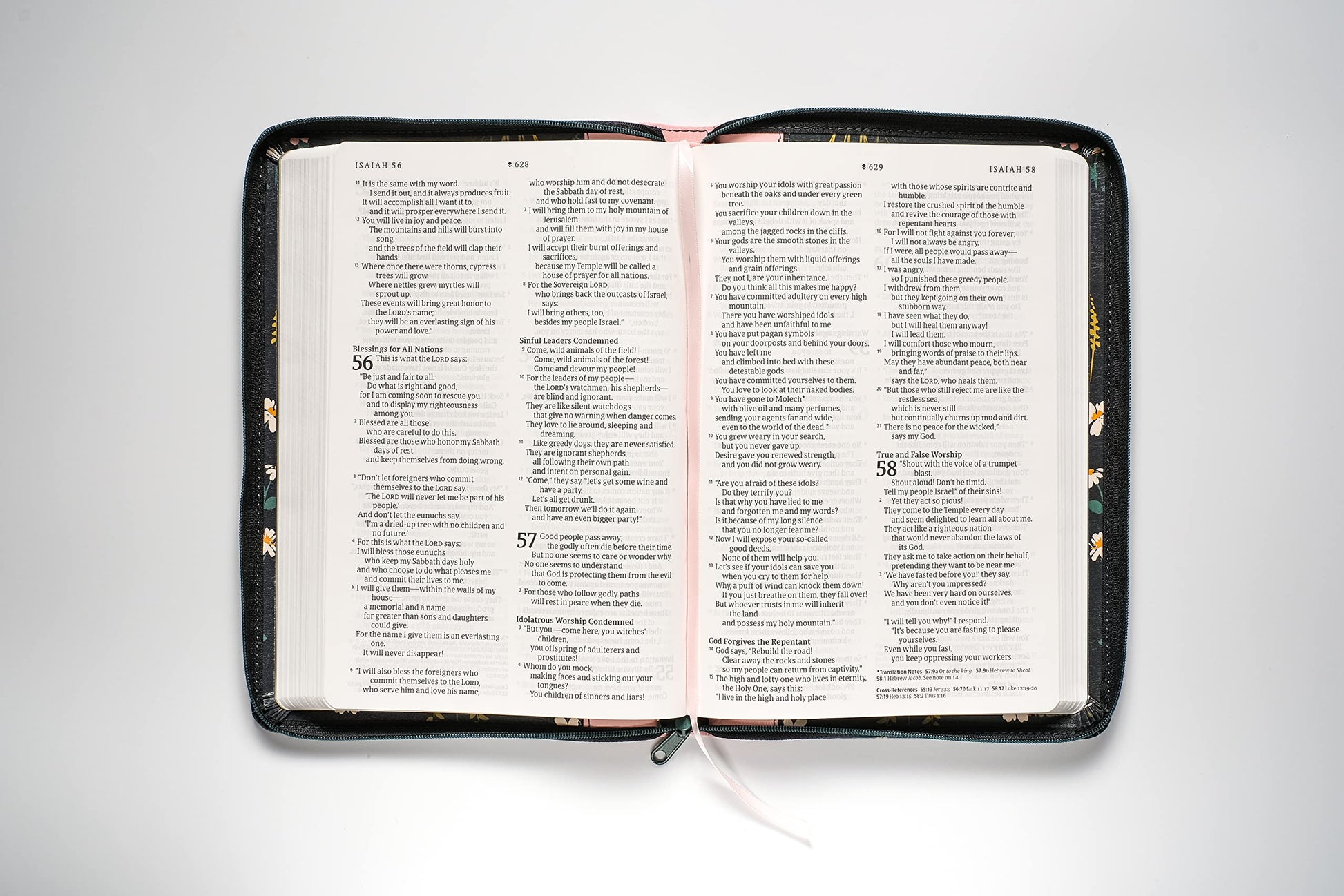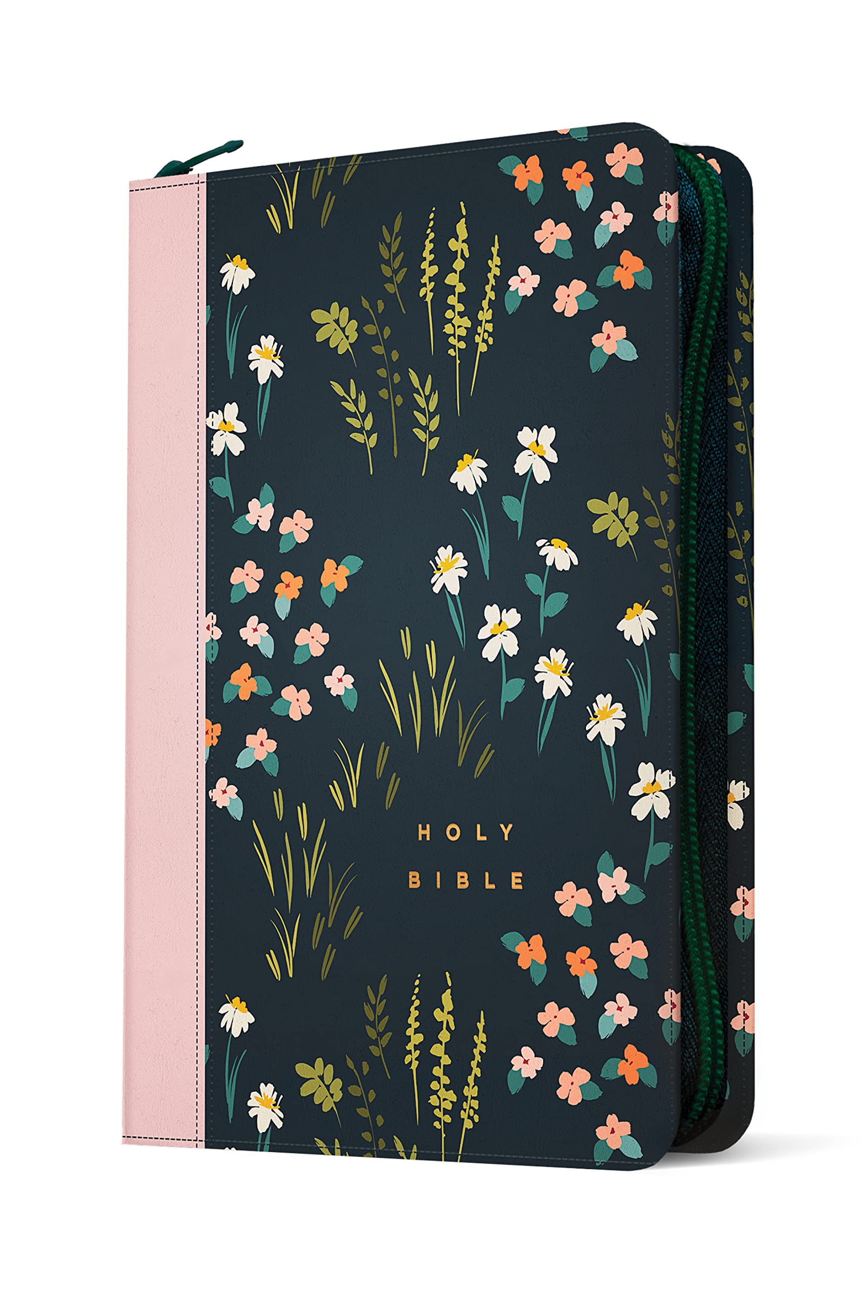 NLT Large Print Thinline Reference Zipper Bible, Filament Enabled Edition (LeatherLike, Meadow Navy & Pink )