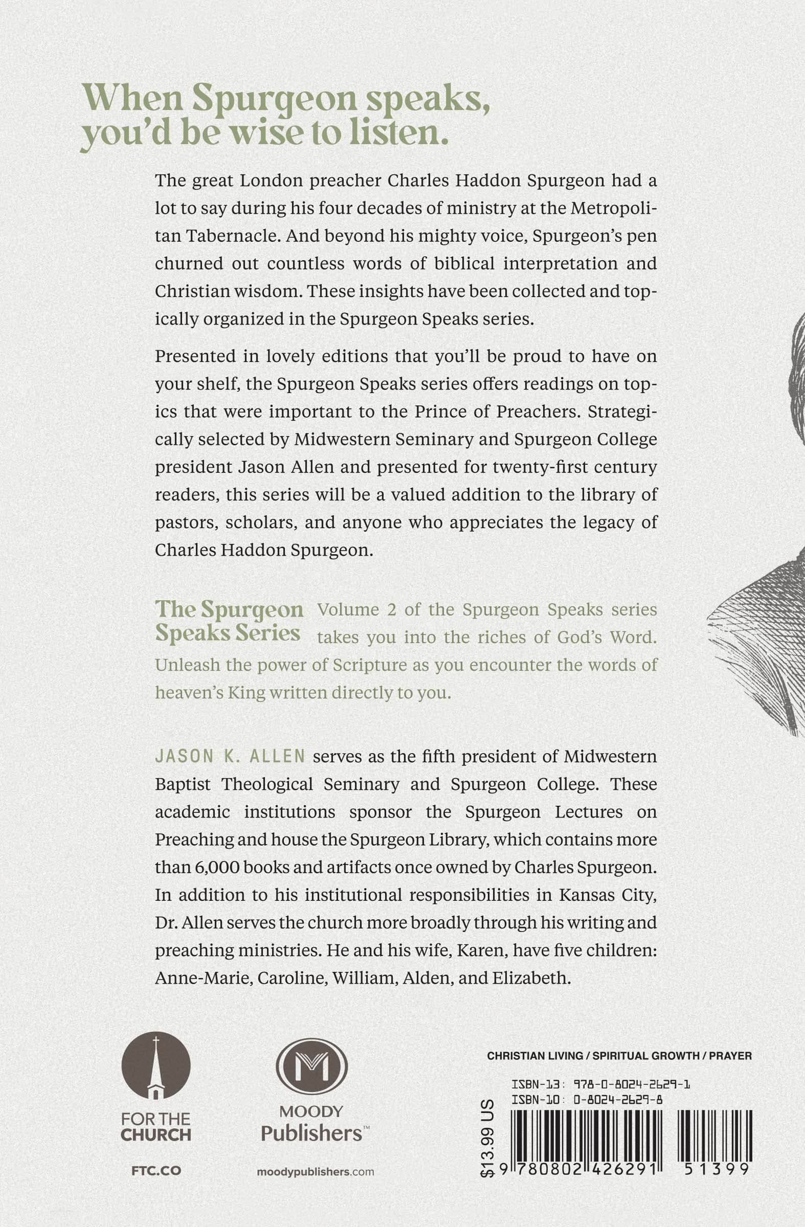 Presented in lovely editions that you’ll be proud to have on your shelf, the Spurgeon Speaks series offers focused readings on topics that were important to the Prince of Preachers. Expertly selected by Jason Allen and updated for twenty-first century readers, this series will be a valued addition to the library of pastors, scholars, and anyone who appreciates the legacy of Charles Haddon Spurgeon.