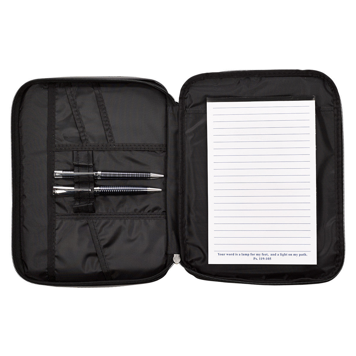 The Two-fold Black Faux Leather Organizer Bible Cover is the perfect Bible cover and organizer for any man or woman who likes to approach their Bible study in an orderly way.