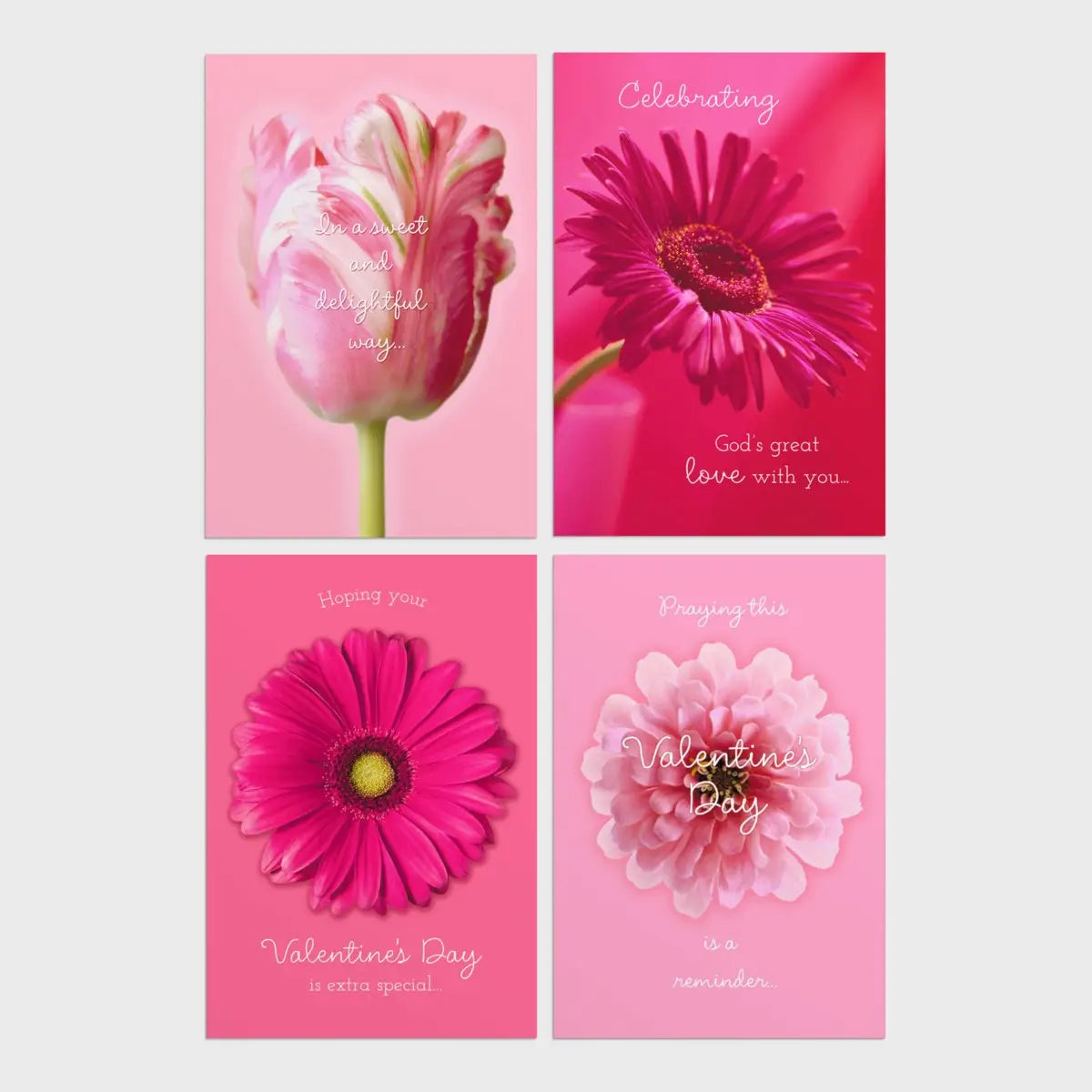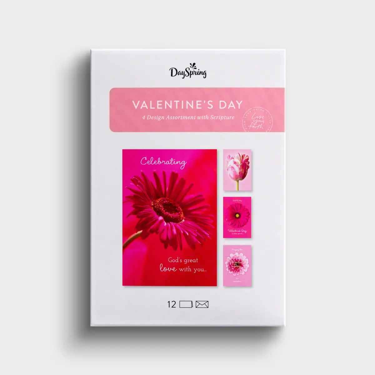 Valentine's Day - Pink Flowers - 12 Boxed Cards and Envelopes, KJV